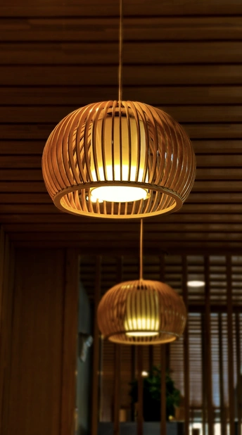 暖黄的灯光从木质灯笼的缝隙里流泻而出,在深棕的格栅吊顶上晕开一圈圈柔和的光晕。这是属于深夜独有的松弛感,不需要喧嚣的热闹,不必奔赴远方的山海,只这一室暖光,就足以安放所有疲惫。抬头望,一盏灯笼悬在眼前,竹篾编织的纹路里藏着手作的温度,暖光顺着纹理流淌,像把细碎的星光揉进了烟火人间。另一盏在远处的光影里朦胧着,像记忆里老家堂屋的那盏灯,总在晚归时亮着,等你推门而入的瞬间,卸下所有铠甲。木质的肌理与暖光交融,让整个空间都浸在温润的氛围里。不必追赶时间,不必迎合他人,就着这盏灯发发呆,看光线在墙面游走,听空气里安静的呼吸声。原来最治愈的生活,从不是轰轰烈烈的奔赴,而是这样一盏灯、一方天地,让你在平凡的日常里,接住属于自己的那份温柔与安宁。