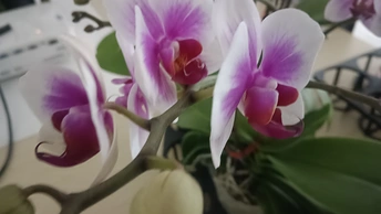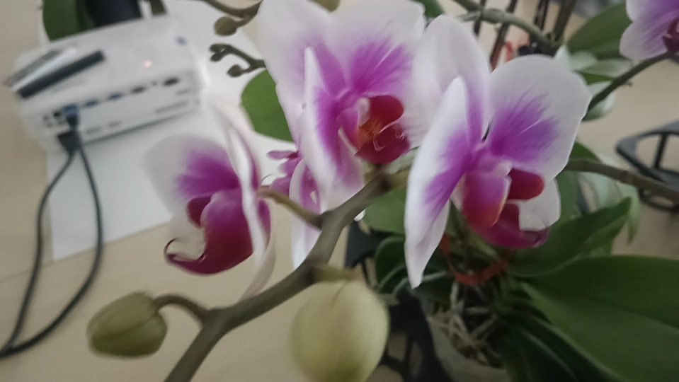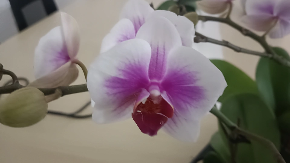 室隅兰的柔粉轻笺 家电与素墙织就简寂的素笺,这簇蝶兰是落在这里的柔粉云——白瓣晕着紫纹,蕊间艳色是揉进绒里的霞,连瓣边的轻蜷都成轻笺里颤过的软痕。 风擦过时,花身晃作轻摇的蝶影,把室隅的冷调烫出片柔。它们不管电线作伴,偏要在笺旁铺展艳色,像偷藏春讯的客,在简境里窝出点鲜活的暖。 凑近看,瓣上的细光轻笺凝的亮,苞尖的浅绿是光里嵌的软,连叶间漏下的碎影,都成了这粉簇漾开的余韵。原来美从不是繁境的喧闹,是室隅里倔强的短章——哪怕身倚家电、境简意平,仍要把刹那的柔,写成日常里最软的一握。