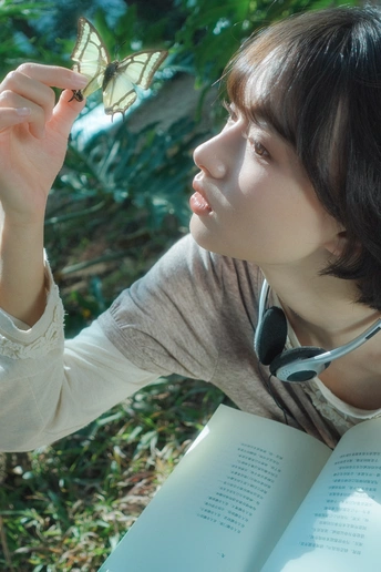 生命是一场静谧的相遇。女孩指尖停驻的蝴蝶,是自然赠予的轻盈信使,书页间流淌着智慧的脉络,耳机里藏着世界的回响。生命在专注的凝视中舒展,在与草木蝶翼的共振里,我们读懂了渺小与宏大,也触摸到时光长河中,每一个鲜活瞬间所蕴含的永恒。