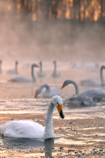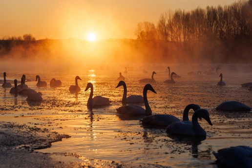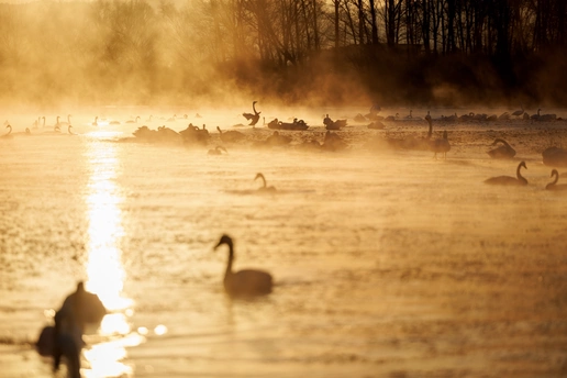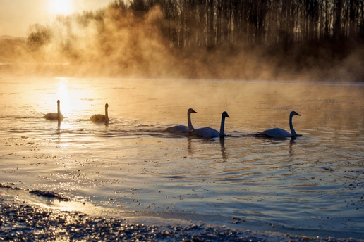 零下二十度的风,沉默的冰河,和一群热情的天鹅。 它们一点也不怕生,扑棱着翅膀打招呼, 把东北凛冽的清晨,搅得热气腾腾。