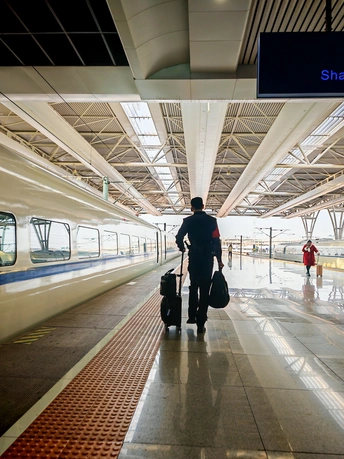 晨光落在站台的地面上,行李箱的轮子碾过光影。这是属于每个赶路人的清晨。每一个拖着箱子的人,都有自己的远方和归处。