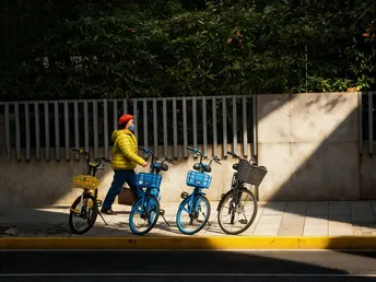 阳光像一把温柔的刀,在墙面上切出明暗。黄衣行人穿过光斑,寻常的街角也成了一幅画。生活的浪漫,总藏在不经意的光影里。