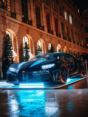 布加迪chiron super sport(落地>1亿+国内不可上牌)的一号车主交付现场。 拍摄于巴黎旺多姆广场