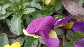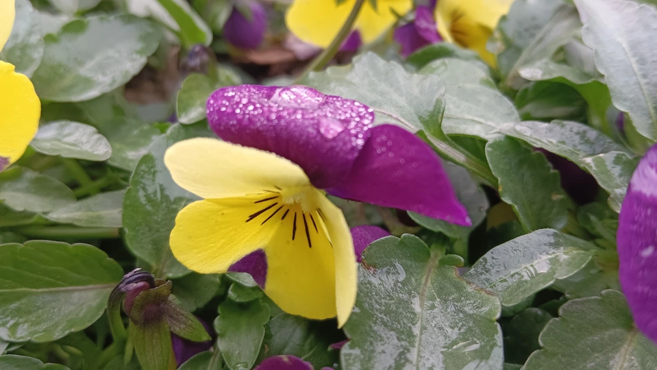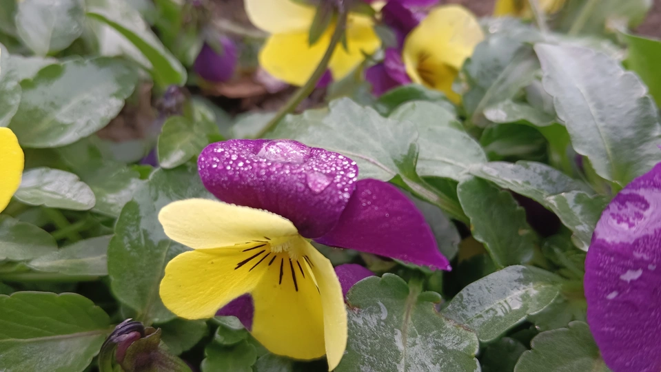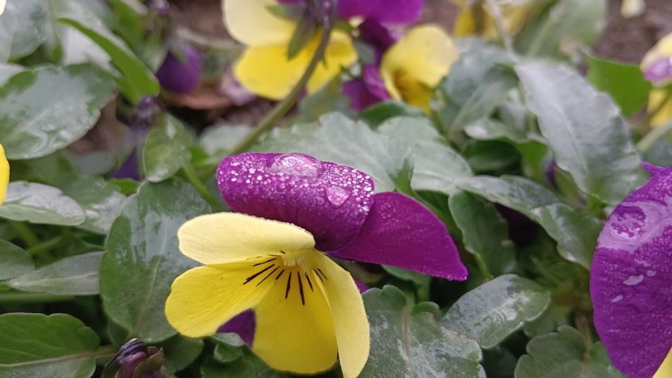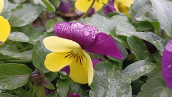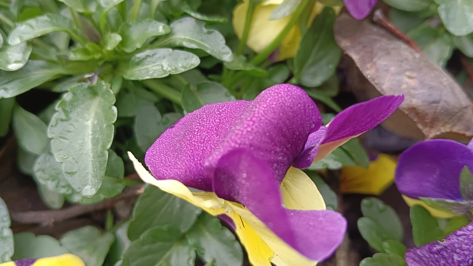 双色堇的露绒星簇 湿叶与残泥铺就润软的素笺,这簇堇是春蘸露的星绒团——深紫瓣裹着浅黄的柔,瓣上细露像揉碎的星子嵌在绒纹里,连瓣边的轻蜷都成星簇颤过的痕。 风擦过时,花身晃作轻摇的紫黄影,把泥丛的凉色焐出片暖。它们不管枯叶作伴,偏要挤作一团艳,像偷藏彩墨的童,在湿境里窝出点鲜活的软。 凑近看,露滴是星簇凝的光,蕊间的黑纹是光里嵌的线,连叶间漏下的碎阳,都成了这花簇漾开的余韵。原来美从不是华境的喧闹,是湿丛里倔强的短章——哪怕身沾湿泥、瓣裹细露,仍要把刹那的暖,写成春野里最软的一握。 风又轻,瓣尖蹭过邻花的紫影,是这星簇的温柔和声;连藏在叶后的同色花骨,都成了这春讯里轻和的伏笔。