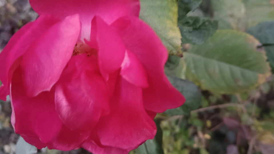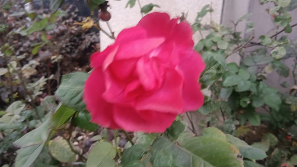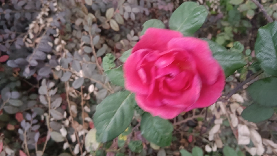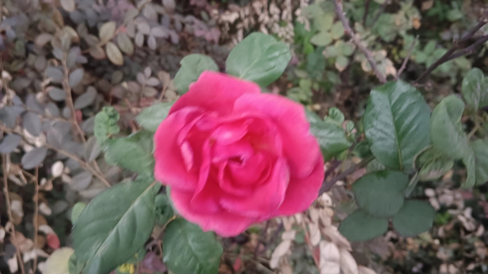 绯玫的繁瓣炽笺 疏枝与残叶铺就浅糙的素笺,这朵绯玫是春揉碎的炽焰——艳红瓣层叠成繁密的绒团,像把揉碎的霞色嵌进了荒枝,连瓣边的轻蜷都成炽笺颤过的痕。 风擦过时,花身晃作轻摇的红浪,把枝间的凉色烫出片暖。它不管叶斑作伴,偏要在笺旁展尽艳态,像偷藏温软的客,在疏境里窝出点鲜活的软。 凑近看,瓣上的细光炽笺凝的亮,蕊间的暗纹是光里嵌的线,连叶间漏下的碎阳,都成了这绯色漾开的余韵。那层叠的瓣像攒了半季的热,要把荒枝的冷意都焐成柔。原来美从不是华境的喧闹,是疏隅里倔强的短章——哪怕叶带黄痕、身倚枯藤,仍要把刹那的炽,写成寂境里最软的一握。 风又轻,瓣尖蹭过邻叶的浅影,是这炽笺的温柔和声;连藏在瓣间的细尘,都成了这艳色里轻和的注脚。它像没介怀周遭的潦草,只顾把自己活成疏枝间,最烫人的那笔暖红。