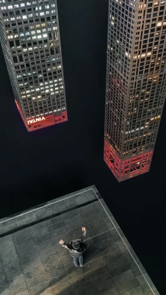 高楼大厦在夜里泛着冷光,巨大的身躯矗立在夜空,把身后的万家灯火都框成了细碎的光斑。桥下的环路正堵得水泄不通,红的尾灯、白的车头灯连成流动的光河,每一辆车里都载着一个急着回家的人,可在大楼的阴影里,那些焦灼的鸣笛声都显得微不足道。 城市让一切变得渺小。我想起刚才在地铁里被人群裹挟的窒息感,想起写字楼格子间里永远亮着的那盏灯,想起我们总在追赶时间,却在这钢筋水泥的森林里,连影子都成了可以被忽略的像素。 风又大了些,我拉紧衣领。远处的大楼依旧沉默地矗立着,像一个冷静的观察者,看着我们在它脚下奔波、欢笑、疲惫,然后明白:在城市的宏大叙事里,我们每个人都只是夜空中一闪而过的星火。