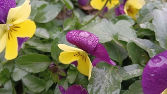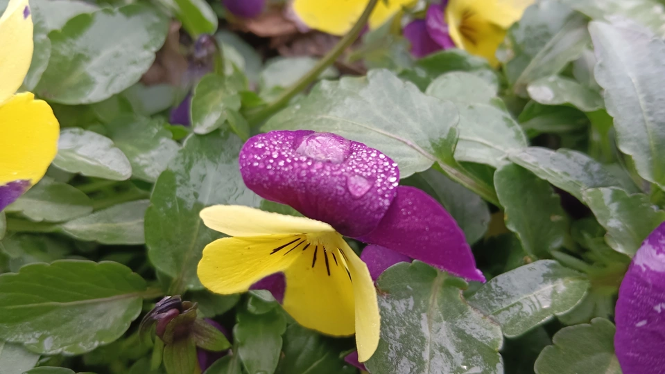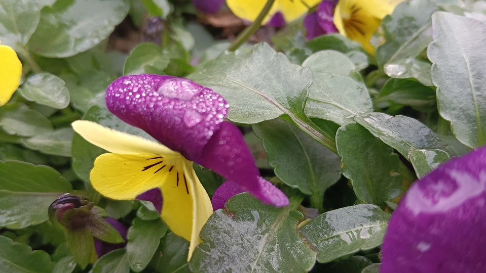 双色堇的露缀星笺 湿叶与泥尘铺就润软的素笺,这朵堇是春沾露的星绒——深紫瓣裹着浅黄的柔,瓣上细露像碎钻嵌在绒纹里,连瓣边的轻蜷都成星笺颤过的痕。 风擦过时,花身晃作轻摇的紫黄影,把丛间的凉色焐出片暖。它不管叶上湿痕作伴,偏要在笺旁展艳,像偷藏彩墨的童,在湿境里窝出点鲜活的软。 凑近看,露滴是星笺凝的光,蕊间的黑纹是光里嵌的线,连叶间漏下的碎阳,都成了这花簇漾开的余韵。那紫瓣的绒与黄瓣的柔缠在一处,像把春的温软都攒进了这一握。原来美从不是园圃的喧闹,是湿丛里倔强的短章——哪怕身沾泥屑、瓣裹细露,仍要把刹那的暖,写成春野里最软的注脚。 风又轻,露滴蹭过邻叶的湿痕,是这星笺的温柔落款;连藏在叶后的花苞,都成了这春讯里轻和的伏笔。