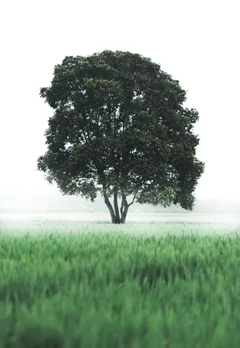 双流凤求凰公园,一棵生长在晨雾和暴雨中的树