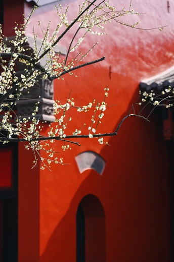 红墙配青梅,最近的成都昭觉寺美的刚刚好