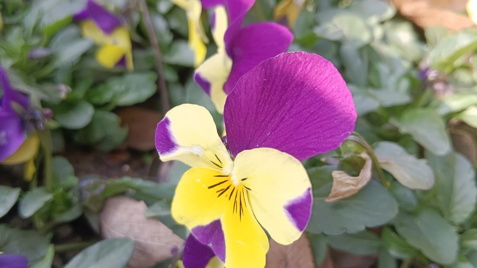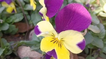 双色堇的彩绒轻笺 残叶与泥尘铺就浅糙的素笺,这朵堇是春揉碎的彩绒——明黄瓣晕着紫纹,像把霞色与日光缠进了绒里,连瓣边的淡斑都成轻笺颤过的痕。 风擦过时,花身晃作轻摇的蝶影,把丛间的凉色焐出片暖。它不管枯叶作伴,偏要在笺旁展艳,像偷藏春讯的童,在荒疏里窝出点鲜活的软。 凑近看,瓣上的细光轻笺凝的亮,蕊间的黑纹是光里嵌的线,连叶间漏下的碎阳,都成了这彩簇漾开的余韵。那紫与黄的缠叠,像把春的温软都攒进了这一握。原来美从不是园圃的喧闹,是荒丛里倔强的短章——哪怕身沾尘屑、瓣带浅斑,仍要把刹那的暖,写成春野里最软的注脚。