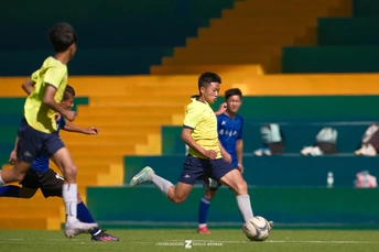 邛海阳光杯全国青少年足球邀请赛。 初中组。 图5, 看台上的马明宇满怀期待地看着新一代的成长。 中国足球的未来可能真的要多依靠少数民族。西昌这帮小孩,无论是身体发育还是技术动作,明显是超过了同龄人的。 富士XH2S 富士XF200F2 富士1.4X 胶片模拟:RA 高光:-0.5 阴影:-1 色温:6K 曝光补偿:-0.3至-1.0