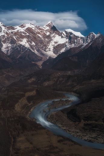 终得一见,南迦巴瓦毫无保留的真容。 7782米雪峰拔地而起,赤色岩壁覆着皑皑冰雪,峰尖刺破云天,傲骨嶙峋,如天神伫立,横断天地,尽显万仞孤峰的凛冽与威严。 山脚下,雅鲁藏布大峡谷纵深落差近5000米,天地如被撕裂,巨壑苍茫。雅鲁藏布江蜿蜒穿谷,似银龙卧于群山之间,柔中藏劲,奔涌千年,劈开高原群山。 上有倚天雪峰,下有绝地大江,山河壮阔,撼彻心扉,这便是藏地最极致的恢弘。