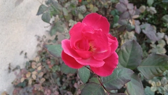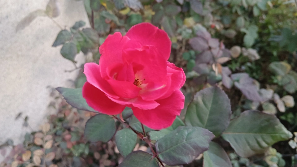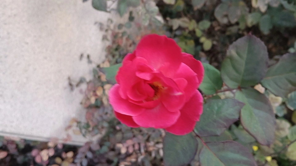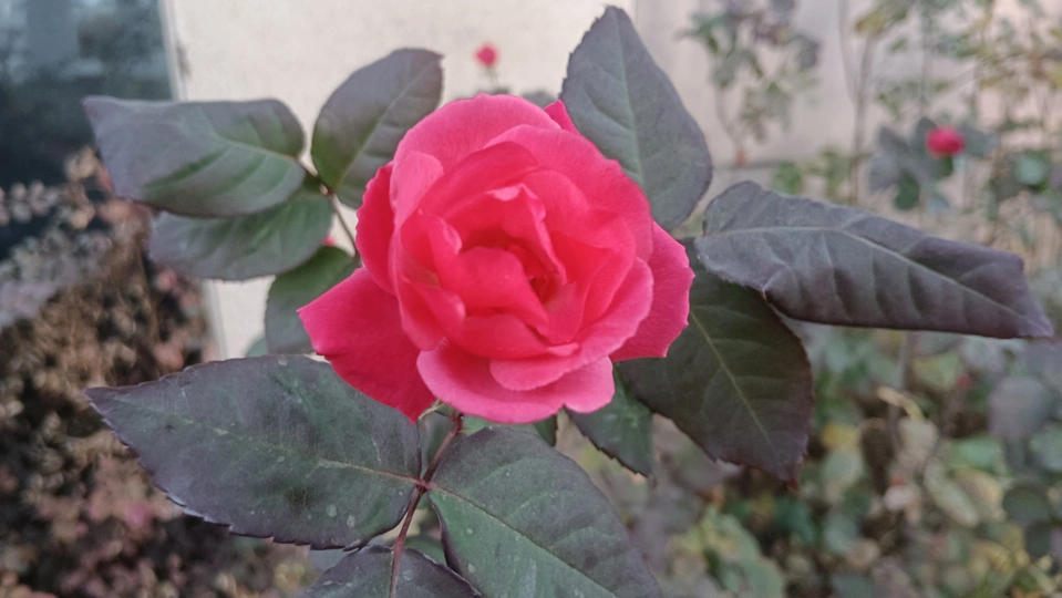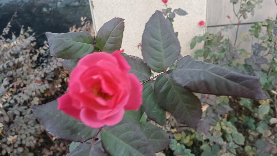 绯玫的炽瓣柔笺 疏枝与杂叶铺就浅糙的素笺,这朵绯玫是春揉碎的炽焰——艳红瓣层叠成绒团,像把霞色嵌进了荒丛,连瓣边的轻蜷都成柔笺颤过的痕。 风擦过时,花身晃作轻摇的红浪,把丛间的凉色烫出片暖。它不管叶间尘屑作伴,偏要在笺旁展尽艳态,像偷藏温软的客,在疏境里窝出点鲜活的软。 凑近看,瓣上的细光柔笺凝的亮,蕊间的淡纹是光里嵌的线,连叶间漏下的碎阳,都成了这绯色漾开的余韵。原来美从不是华境的喧闹,是疏隅里倔强的短章——哪怕身倚枯枝、瓣带浅痕,仍要把刹那的炽,写成寂境里最软的一握。