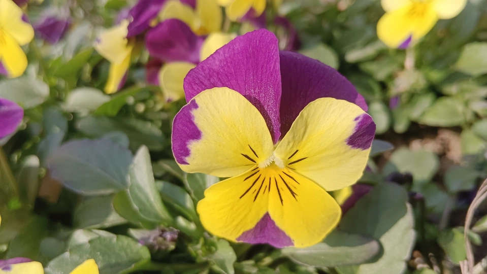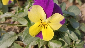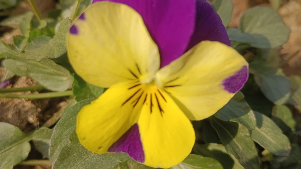 双色堇的春野彩绒笺 泥尘与疏叶铺就浅暖的素笺,这朵堇是春抖落的彩绒团——明黄瓣晕着紫纹,像把日光与霞色缠进了绒里,连瓣边的淡斑都成彩笺颤过的痕。 风擦过时,花身晃作轻摇的蝶影,把丛间的凉色焐出片暖。它不管枯叶作伴,偏要在笺旁展艳,像偷藏春讯的童,在荒疏里窝出点鲜活的软。 凑近看,瓣上的细光彩笺凝的亮,蕊间的黑纹是光里嵌的线,连叶间漏下的碎阳,都成了这彩簇漾开的余韵。那紫与黄的缠叠,像把春的温软都攒进了这一握。原来美从不是园圃的喧闹,是荒丛里倔强的短章——哪怕身沾尘屑、瓣带浅斑,仍要把刹那的暖,写成春野里最软的注脚。 风又轻,瓣尖蹭过邻叶的浅影,是这彩笺的温柔和声;连藏在叶后的同色花苞,都成了这春讯里轻和的伏笔。