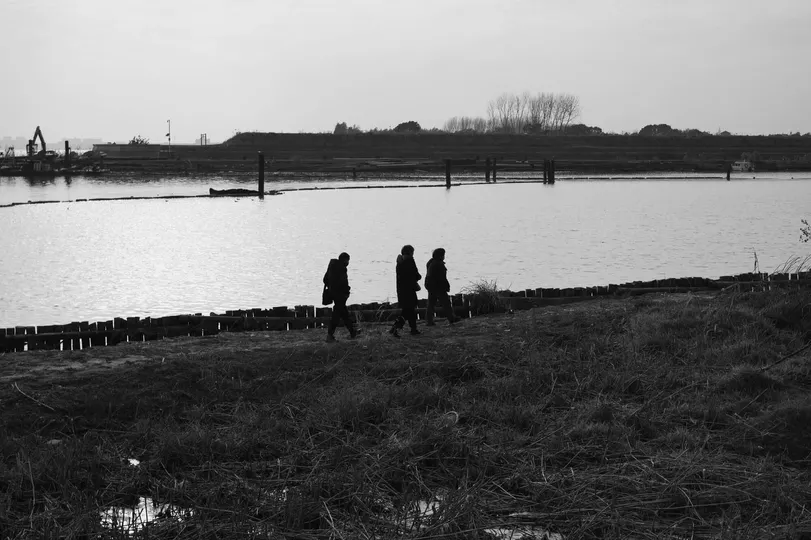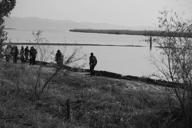 黑白之间,是人与土地的对话。 在江岸边,他们的身影与枯苇、旧堤、远山叠印, 每一步都踏在时代与自然的交界线上。 镜头里没有喧嚣,只有沉默的行迹,和被风带走的故事。 #米拍 #黑白摄影 #人文纪实 #江滩行记 #时代印记