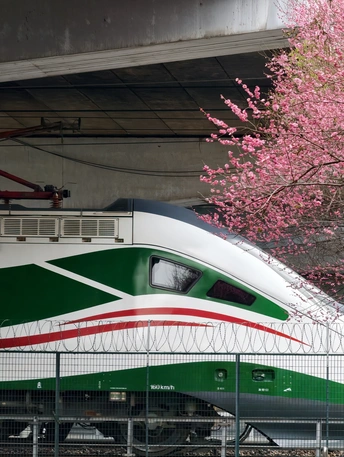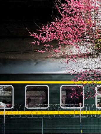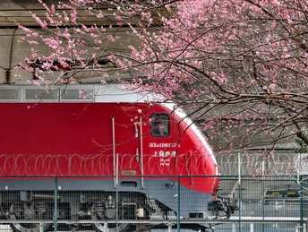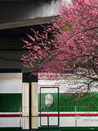 这哪是列车啊,是把春天的热烈,焊在了奔赴的轨迹里。是把春日的浪漫,偷偷塞在了列车路过的瞬间里。