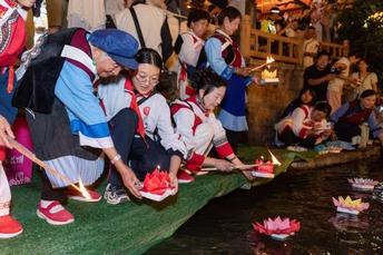 丽江古城中元节放河灯