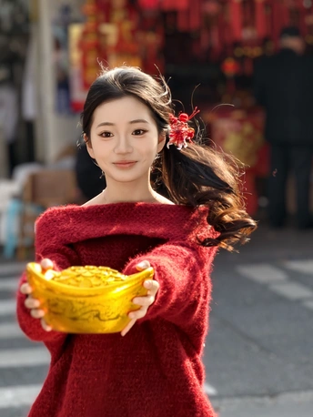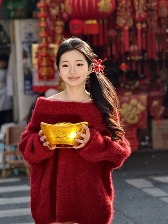 在年味最浓的街头,完成了这场“红运”主题的拍摄。被满墙的“福”字包围,连风里都带着欢喜的味道。特意穿上红色毛衣,捧起金灿灿的元宝,在镜头前尽情舒展笑意。每一张照片,都是对新年最直白的告白。2026马年,主打一个“红火”与“兴旺”。把喜气分享出来,愿看到的你,也能接住这份好运。策马扬鞭,奔赴山海,我们的日子,注定热气腾腾。