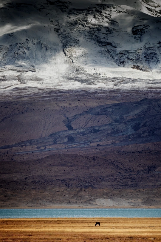 新疆喀什,帕米尔高原,慕士塔格峰下的马
