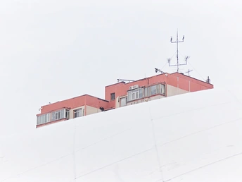 雪把世界铺成一张柔软的白毯,几栋红房子像好奇的小家伙,只露出半截身子探头探脑。