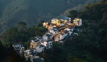 贵州省黔西南布依族苗族自治州望谟县油迈瑶族乡坝令布依寨的清晨。群山簇拥的美丽乡村。