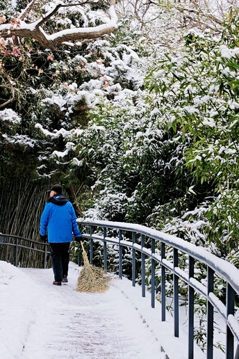 白雪铺满林间小路,竹枝轻垂,天地一片干净。轻轻扫开一层薄雪,让小路慢慢显露,安静又治愈。