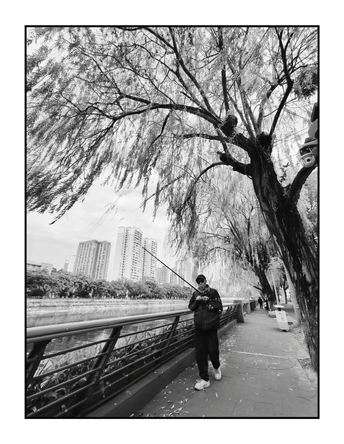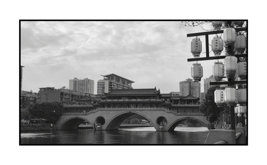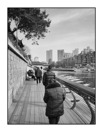 褪去斑斓,用黑白定格蓉城锦江边的马年晨光。灯笼藏进了影调里,锦江的水依旧不急不缓。这就是成都的春节,热闹在街巷,安宁在江畔。烟火起,照人间,愿岁岁常相见。 从摄影技巧上来讲:以中焦和广角镜头为主,在保持画面真实感的同时,既捕捉了人物互动的细腻瞬间,又展现了城市空间的宏大。 采用决定性瞬间的拍摄理念,定格了行人、垂钓者、亲子等充满生活气息的场景和情感表达。