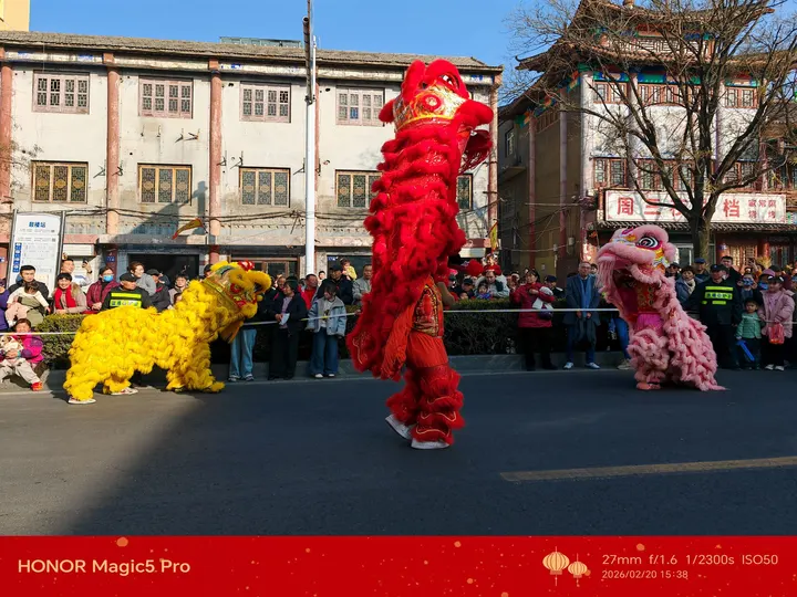 红的炽烈,黄的明亮,粉的俏皮,三只醒狮在老街的画布上,燃成了不熄的焰火。斑驳的老墙作为背景,围观的人群化作底色,这一刻,传统与烟火气完美交融。镜头记录的不仅是一场表演,更是一座城市血脉里流淌的,关于春天的仪式感。