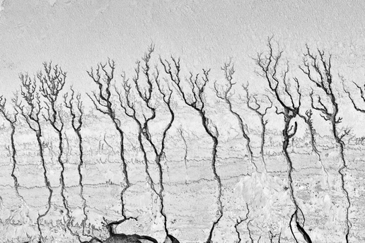 大地皲裂,裂纹如诗行般铺展。黑白的世界里,荒芜并非终结,而是自然用最原始的笔触写下的生命寓言。