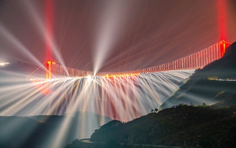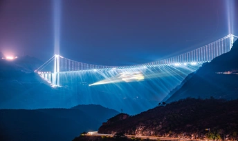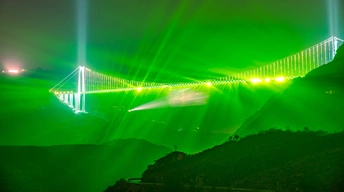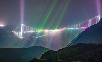 2026年2月24日,贵州省黔西南布依族苗族自治州贞丰县平街乡,大年初八,花江峡谷大桥灯光秀璀璨夺目、震撼人心。 夜幕降临,625 米高空的桥身化作巨型光影幕布,激光与水幕交织,红金主色调搭配流动彩光,将峡谷夜空点亮,气势恢宏又浪漫唯美,尽显超级工程的科技与美学。大桥游人如织,观景台、服务区人头攒动,各地游客慕名而来,拍照打卡、登高赏景,处处欢声笑语,年味与壮阔风光相融,成为新春最火的网红地标。