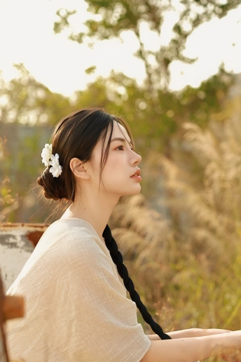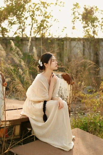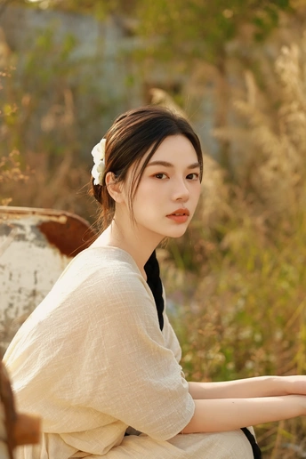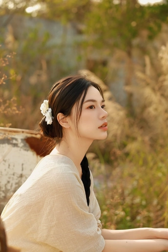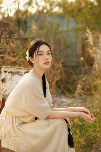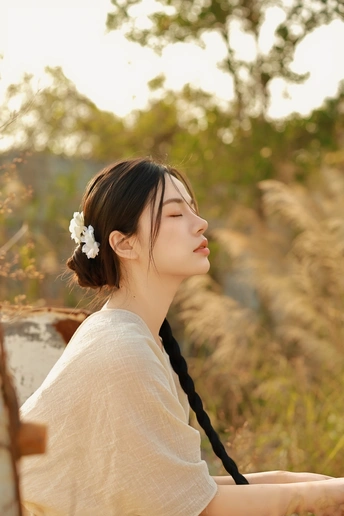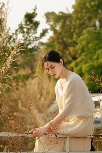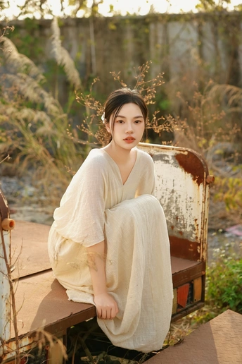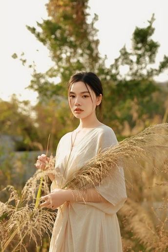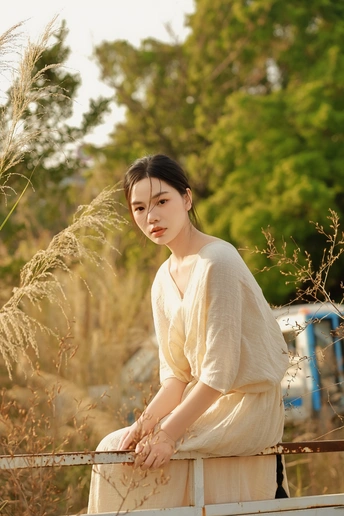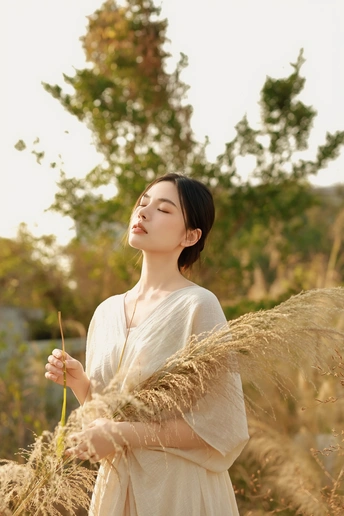 出镜:椿桃 她走入秋日的原野,成为风的一部分。 在漫天的草浪与寂静的光里,低头或仰望, 都像是在收集时间散落的温柔片刻。