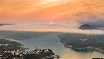 2026年2月20日,贵州省黔西南布依族苗族自治州望谟县蔗香镇。大年初四的冬日清晨,红水河江面薄雾轻笼,如烟似纱,缓缓飘绕在碧水与群峰之间。 寒气凝结的雾霭,恰与初升朝阳不期而遇。朝阳穿透薄雾,将漫天白雾染成暖金,光影流转,雾随光动,雾因日而灵动,日因雾而温柔。难得一见的冬日奇景,雾与日出共生相映,唯美空灵,宛如仙境。