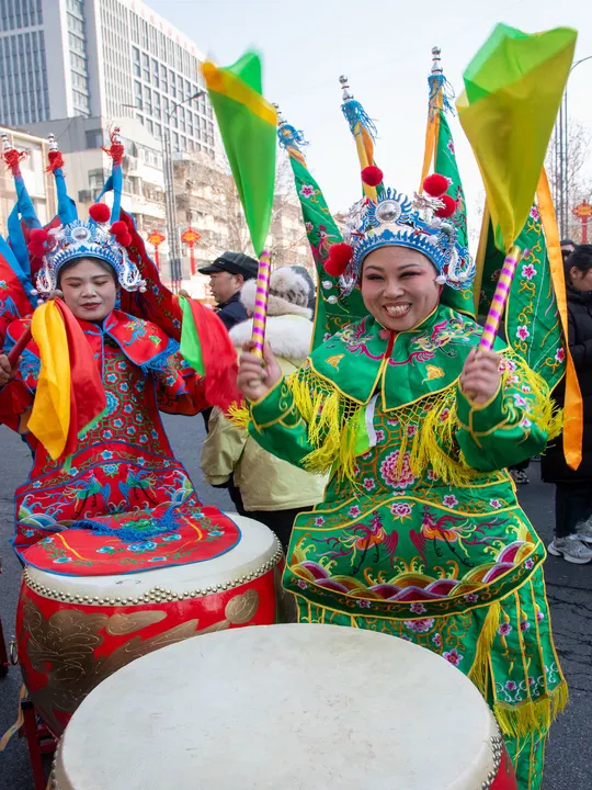 红妆明艳,绿影婆娑,鼓点铿锵震彻街头。在熙攘的闹市中,镜头定格下这一瞬最鲜活的民俗烟火。飞扬的旗帜与饱满的笑颜,是刻在骨子里的喜庆,更是非遗文化生生不息的脉搏。