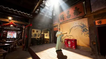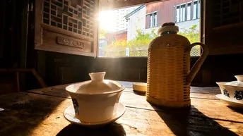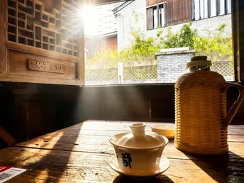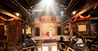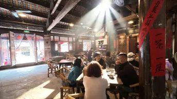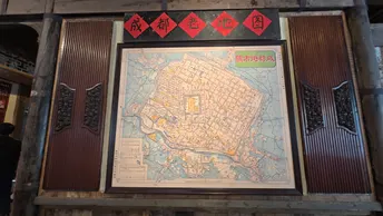 在川西木构的穹顶之下,百年匾额“積德裕後”“福德满堂”静静悬于梁间,每一道木纹都藏着时光的褶皱。竹编暖壶与青花盖碗静置于旧木桌上,窗外是青灰瓦檐与新绿竹影,一窗之隔,便将喧嚣滤成了清宁。 戏台之上,竹琴轻响,“永昌精”的匾额下,老成都的市井故事在弦音里缓缓流淌。满墙的盖碗如星子般排列,映着“开水请自取”的红联,每一只碗里都盛着不慌不忙的烟火。墙上的老地图,勾勒出旧时成都的街巷肌理,而茶客们的闲谈,又把新的日子织进了这方茶社。 一茶一座,一影一光。当阳光透过木格窗棂,在老木桌上投下斑驳的光影,便懂了:成都的慢,从来不是慵懒,而是把日子泡在茶里,让每一缕茶香,都裹着岁月的温柔与从容。