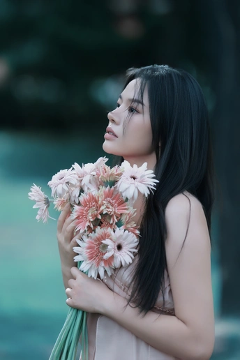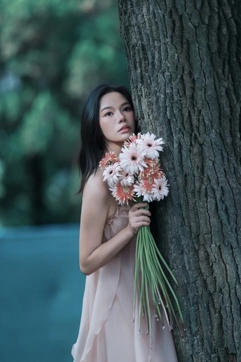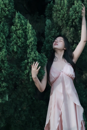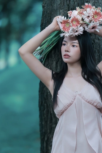 风掠过枝桠, 花轻落肩头, 所有温柔都藏在这一场无声的低语里。