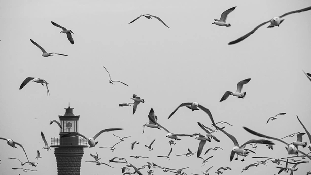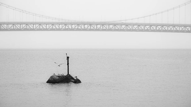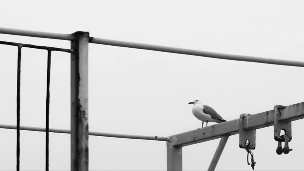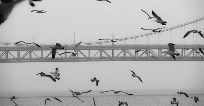 本组照片摄于大连。 钢铁管线化作琴键,群鸥静栖成休止符,一羽振翅,奏响海岸独有的自由乐章。