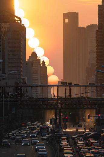 当橙金的落日沿着城市轴线缓缓沉落,一条光带便横贯了鹭岛的长街。桥上工人的身影在余晖里勾勒出剪影,桥下的车流则是都市脉搏的跃动。这般“悬日”盛景,是鹭岛独有的馈赠,每年仅11月与2月左右才会如约而至,难得一见,让自然的浪漫与城市的烟火在此刻相融。