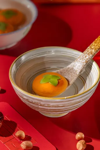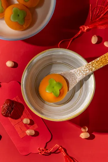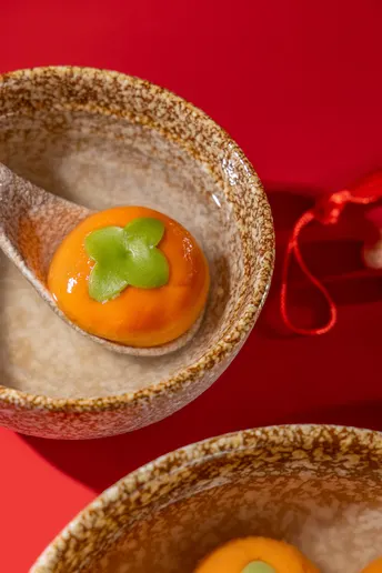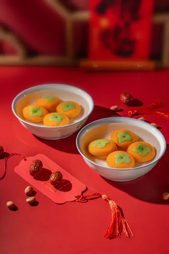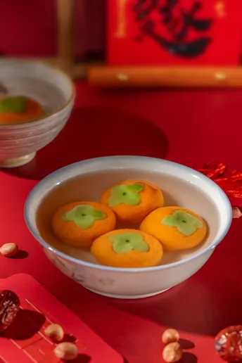 正月十五,一碗“柿柿如意”元宵,是藏在烟火里的仪式感。橙红的外皮裹着清甜内馅,在红绸背景下格外亮眼。咬开的瞬间,软糯与甜蜜在舌尖化开,不仅是味蕾的满足,更是对新一年“事事顺遂”的美好期许。