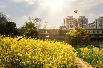 在成都三环路的转角,春天把两种颜色泼进了钢筋水泥的缝隙里。 一片明黄的油菜花,是大地写给城市的短诗。它们在铁轨桥下兀自盛放,风过时,花浪翻涌,把泥土的气息揉进车流的喧嚣里。蜜蜂在花间忙碌,把春光酿成蜜;绿皮火车的汽笛声穿过花田,把市井的匆忙,慢成了一帧流动的油画。 几枝粉艳的杜鹃,是窗台藏不住的温柔。花瓣轻叠,粉白渐变,像少女的裙摆,在风里轻轻摇曳。深绿的叶衬着柔粉的花,把春日的细腻,藏进每一片舒展的瓣尖。 不必远行,春天就藏在城市的边缘。这三环路旁的金黄与窗台上的粉黛,不似山野的野趣,却有着独属于成都的松弛——它在车流与楼宇间兀自盛放,告诉我们:再忙碌的生活,也总有一片温柔,等你驻足。