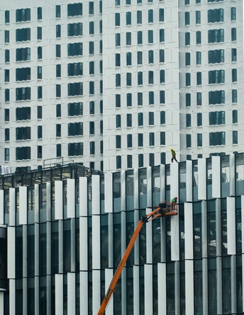 城市天际线在晨雾中若隐若现,他们如微尘般悬于钢架之间。安全绳在风中轻颤,工具与钢筋碰撞的声响回荡在未完工的楼宇间。渺小的身影穿梭于巨大的建筑骨架中,汗水在百米高空蒸腾成雾,又凝成霜。他们以危险为阶梯,用双手托起摩天楼的轮廓——那些被晨雾浸透的安全帽下,藏着无数双紧握希望的手。当暮色漫过玻璃幕墙,城市的灯火在他们身后次第亮起,每一束光都是渺小与伟大的交响。
