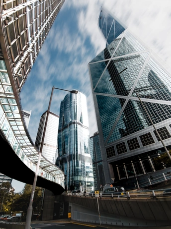 拍摄于香港中环 鱼眼广角撑开香港中环的钢铁森林,倾斜构图拉满都市纵深感。冷调蓝底的精准调色,压暗环境突出玻璃幕墙的通透内透,后期柔化流云,把维港畔的摩登锋芒与城市肌理,凝进这帧极具张力的城市影像里。