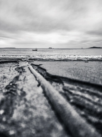 缆绳在滩涂刻下粗粝的诗行,一头系着饱经海风的船,一头拴着岸的沉默。黑白光影里,磨损的纤维、起伏的浪纹,都在诉说着归航与守望的故事。每一次潮起潮落,都是船与岸之间,最古老的约定。