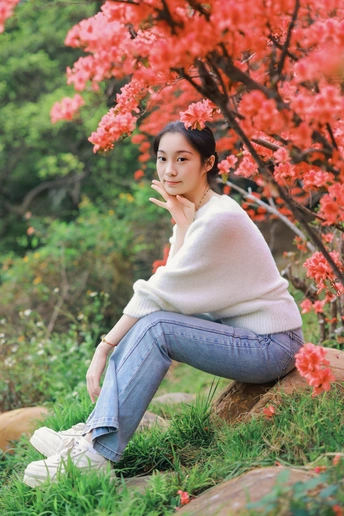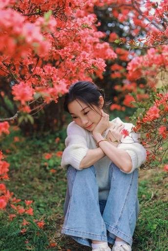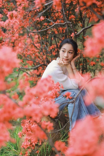 风遇春山,花自烂漫 一捧绯红,染尽人间温柔 于杜鹃花间,与春日相逢 满目温柔,尽是春日浪漫