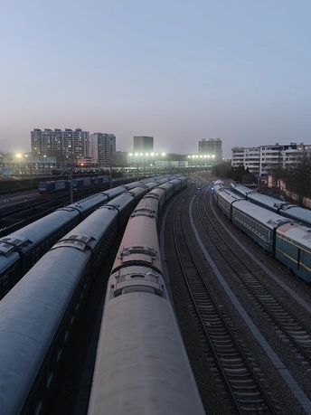 刚出门时,天刚擦蓝,远处的居民楼亮起零星的灯,站台的白炽灯把钢轨照得发亮。那些绿皮车厢像一群沉默的巨兽,在轨道上排得整整齐齐,车顶还积着一层薄霜,像是刚从北方的寒夜里回来。 等我回来时,雪已经厚厚一层,盖住了列车顶