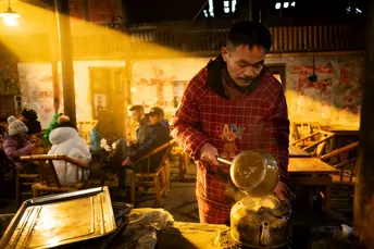 青瓦覆岁月,木梁藏旧年,彭镇观音阁老茶馆,从清时古刹到市井茶堂,走过近三百年风雨。 曾是香火缭绕的观音古阁,因一场大火庇佑一方,后随水运兴盛,化作往来客商歇脚闲谈的茶铺。 川西民居的古朴风骨,老虎灶的氤氲热气,藏着最地道的人间烟火。 汶川地震时的安然屹立,是岁月温柔的眷顾;晨雾里的早茶香气,是古镇不变的温柔。 一杯清茶,几句闲谈,一把老椅,一段流年。 这里没有喧嚣浮躁,只有时光慢煮,茶香绵长, 守着川西古镇的根,藏着老成都最动人的烟火乡愁。