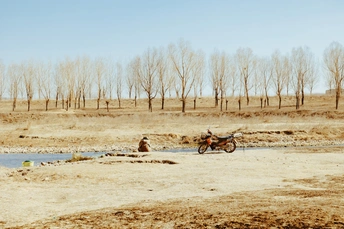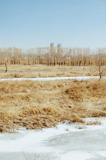 故乡的春,是从冰河解冻的脆响里醒转的。 残雪还恋着枯黄的草甸,风却软了下来,掠过秃枝,捎来河鸭振翅的欢鸣。溪边有人静坐着,摩托在旁候着,像在等一场迟来的归期。旧屋的砖墙上,褪色的春联还留着年的余温,石狮子颈间的红绸,仍系着儿时的念想。 老树的焦痕里藏着过往,空荡的院落盛着时光。这春,不似江南那般柔媚,却在粗粝的风里,裹着最踏实的烟火气——那是泥土的腥甜,是冰河的清冽,是刻在骨血里的,再也回不去的旧时光。