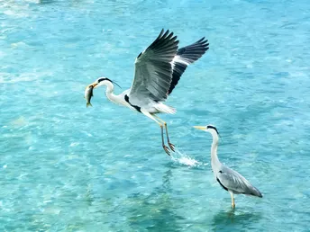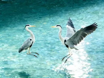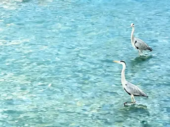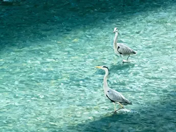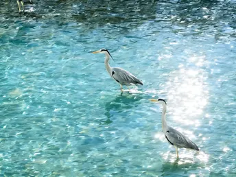 春水初生,锦江如练。 在安顺廊桥与九眼桥之间的浅滩上,几只苍鹭正静立水中,宛如水墨丹青里的留白。 它们身披一袭素净的灰羽,头顶一抹墨色,修长的脖颈优雅地弯曲,黄喙如剑,在粼粼波光中静待时机。 当风掠过水面,它们或信步浅滩,或振翅高飞,姿态翩跹,仿佛是从千年诗卷里飞出的精灵。 这是成都的春日序曲,是人与自然最温柔的相遇。 在喧嚣的城市中心,它们用优雅的身影,守护着这片水域的宁静与生机。