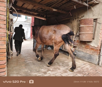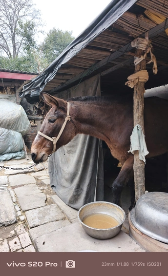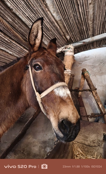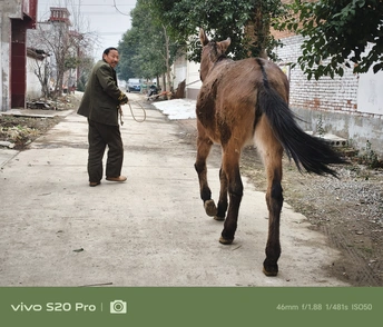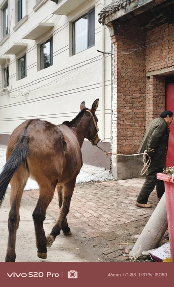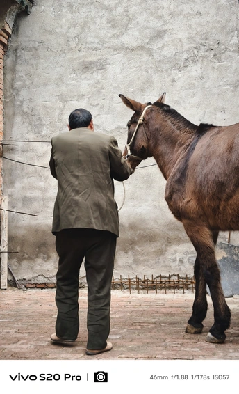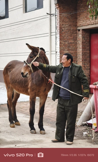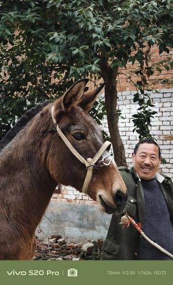 这,是我的大伯,常年穿着一件军大衣,走路风风火火,话不多,但笑起来格外灿烂。 这,他从山东买来的骡子,如今已经10岁了。平日里,大伯负责照料它,农忙时,骡子便成了他的得力帮手。 2025年过年回河南老家,闲聊时,大伯听说我喜欢拍照,突然兴致勃勃地问我:“要不要拍骡子?现在可不多见了。”我有些意外,难得见他这么主动,便欣然答应。 骡子拴在老院里,大伯领着我过去,随后牵着骡子在门口溜达了一圈。我拿起手机,记录下这些瞬间,打算把照片冲洗出来送给他。大伯平时很少拍照,我想这些照片他一定会喜欢。 这几年,大伯经历了不少事,如今的他显得更加温和。希望他能一直健康平安。