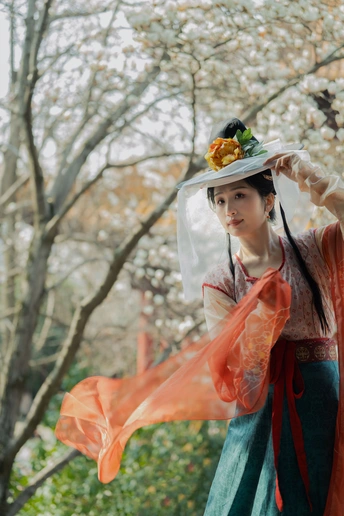 玉兰树下立娉婷, 素影含香入画屏。