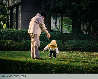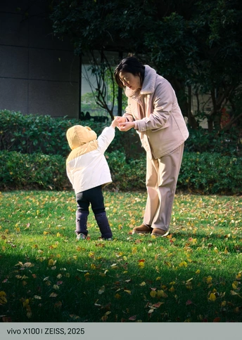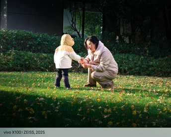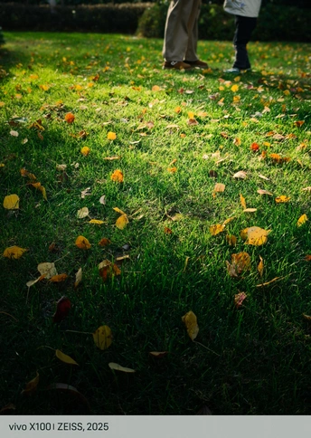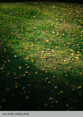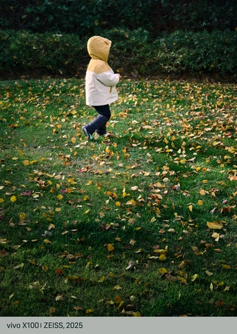 陪伴母女俩散步玩耍,突然看到这束光照在满是落叶的草地上,时光都好像染上了美好而温馨的味道。女儿捡起一片又一片落叶,送给妈妈,爱与欢乐在光影中弥漫。手机轻便的优点这一刻便显露出来,掏出来就能记录突然发现的美。